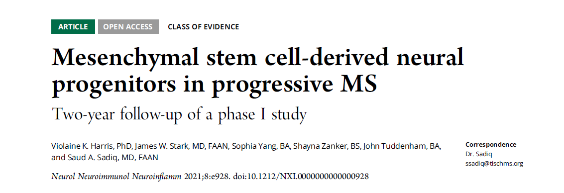 该项目纳入受试者20名多发性硬化患者,每隔3个月做一次干细胞移植治疗,共18人完成了该项目的两年随访。结果显示:在本项临床治疗试验安全性和有效性持续为期2年的过程中显示效果良好,10名患者表现出治疗效果,3名受试者持续性良好,5名患者的残疾逆转程度持续性不理想。在干细胞治疗后脑脊液生物标记具有治疗意义的改变,该团队推测对干细胞治疗多发性硬化的治疗可能因特异性的免疫调节和营养方面具备特殊的反应的机制。